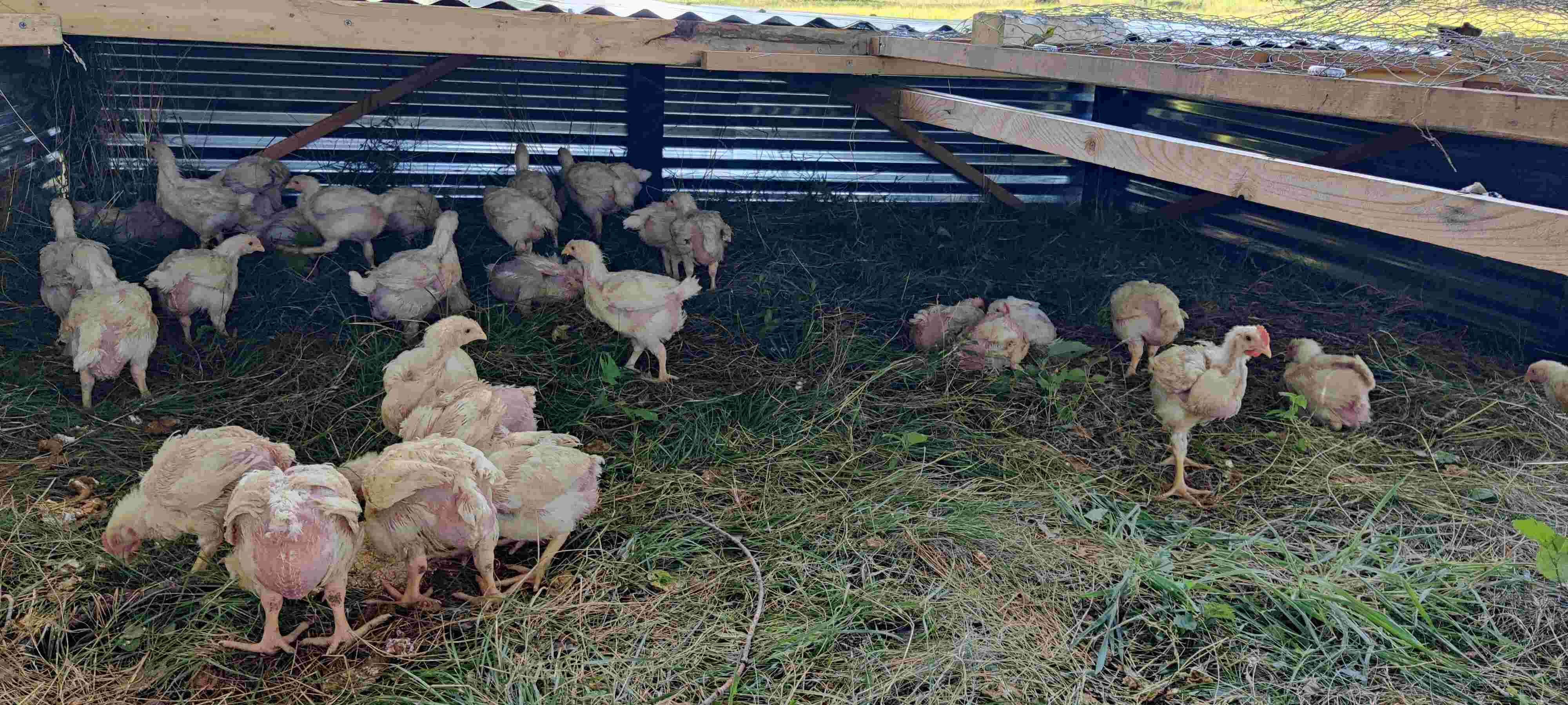 THE FOLLOWING IS A DAILY WORK LOG FOR PASTURED CHICKEN FARMING (CORNISH CROSS BROILERS). THIS STUDY FOCUSES ON IMPLEMENTING ANIMAL-WELFARE BEST PRACTICES APPLIED TO A SMALL PASTURED CHICKEN BUSINESS MODEL. PROCESSED CHICKENS WERE PASSED OUT TO LOCAL RESIDENTS FREE OF CHARGE.