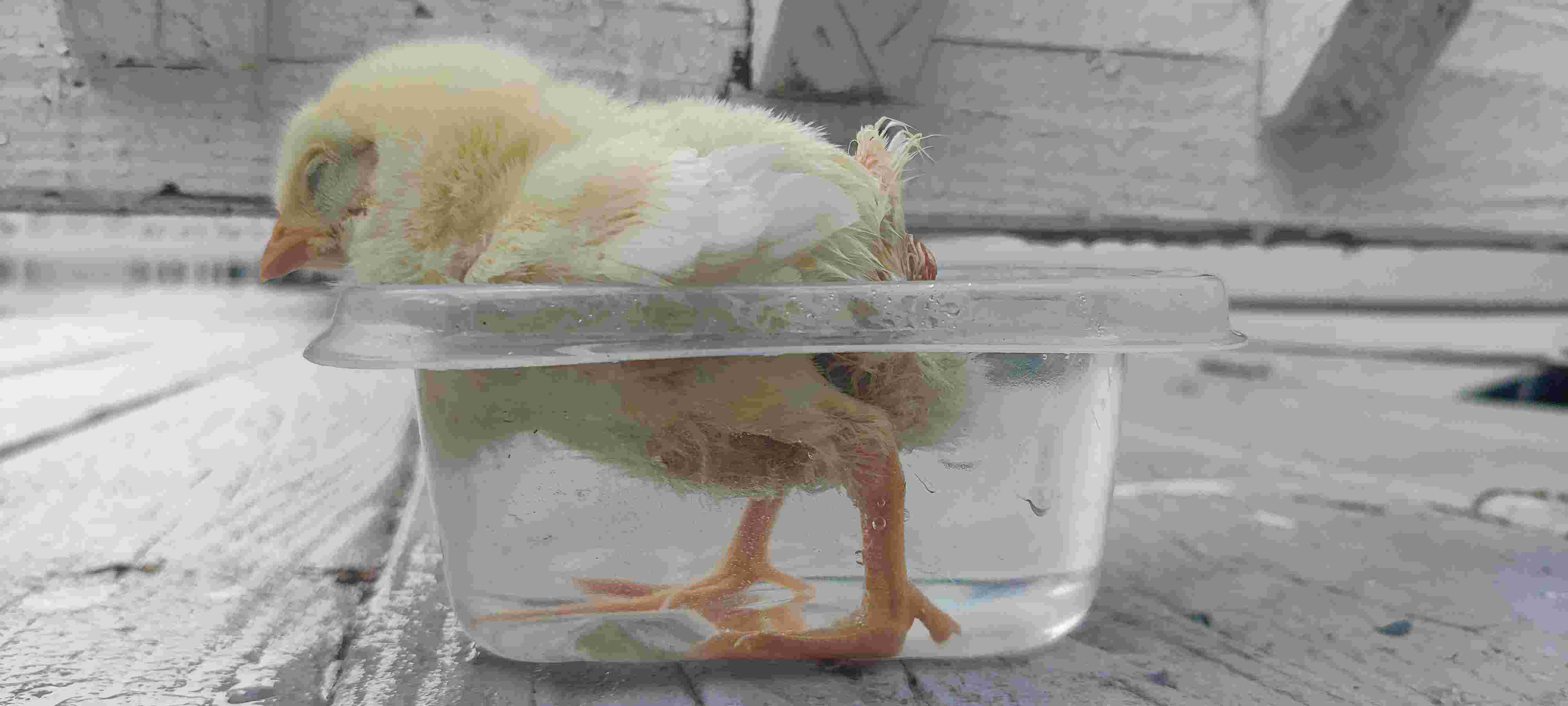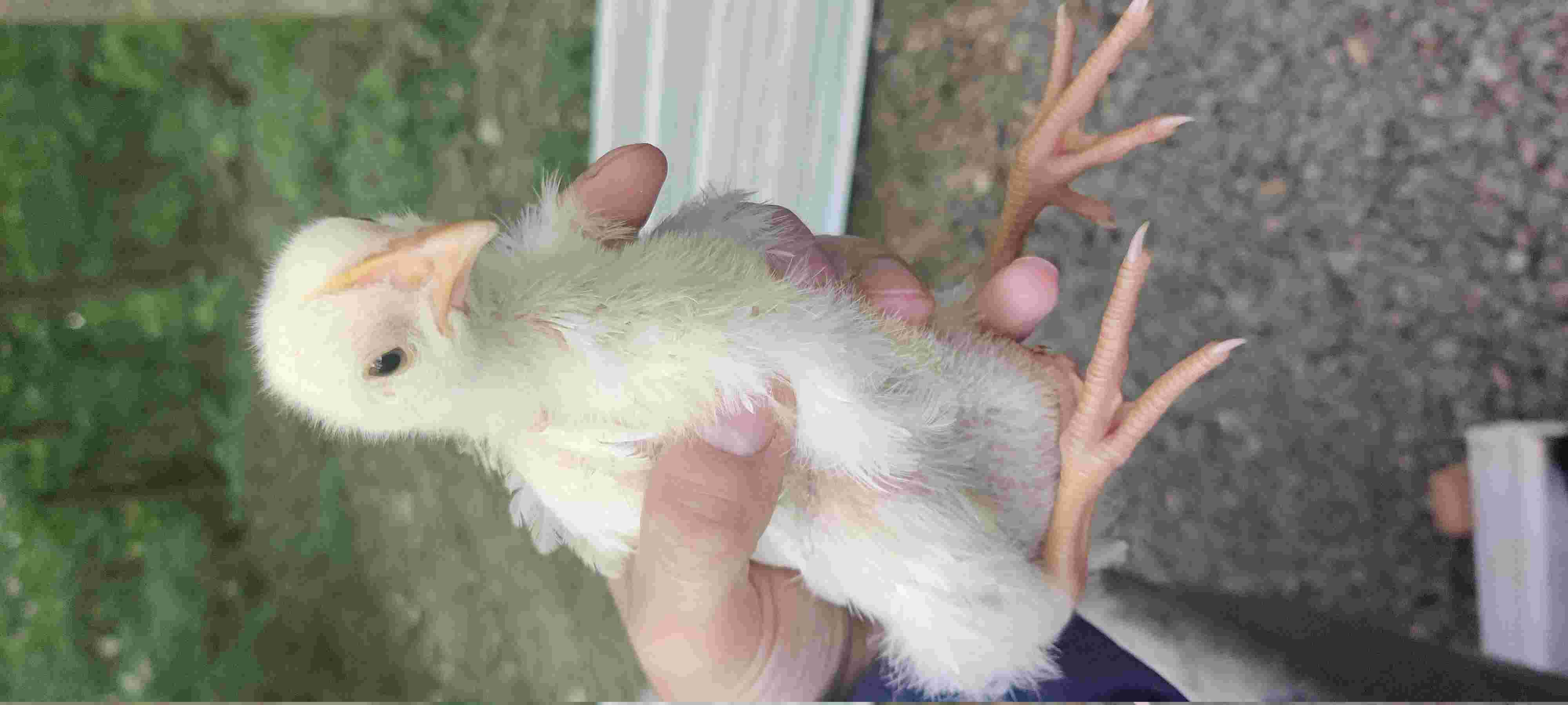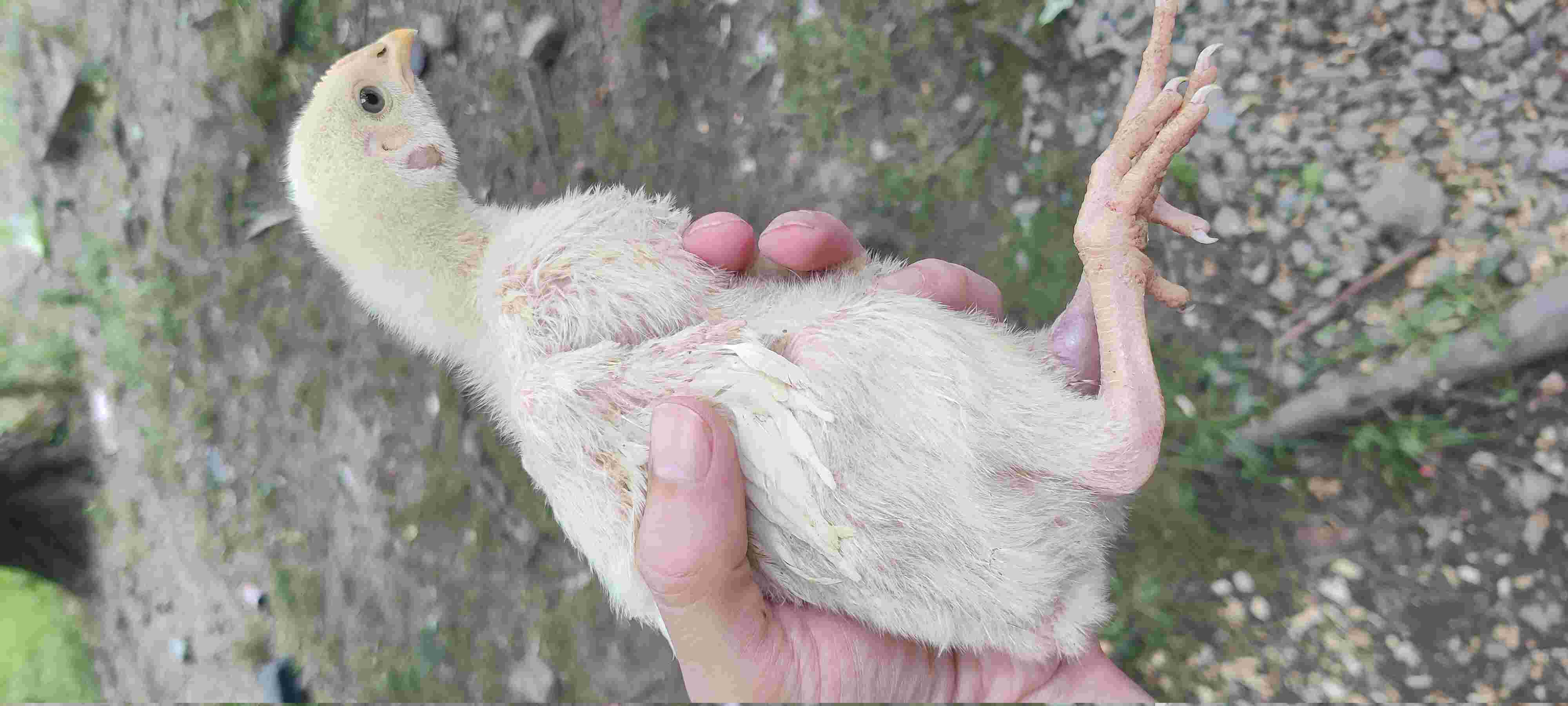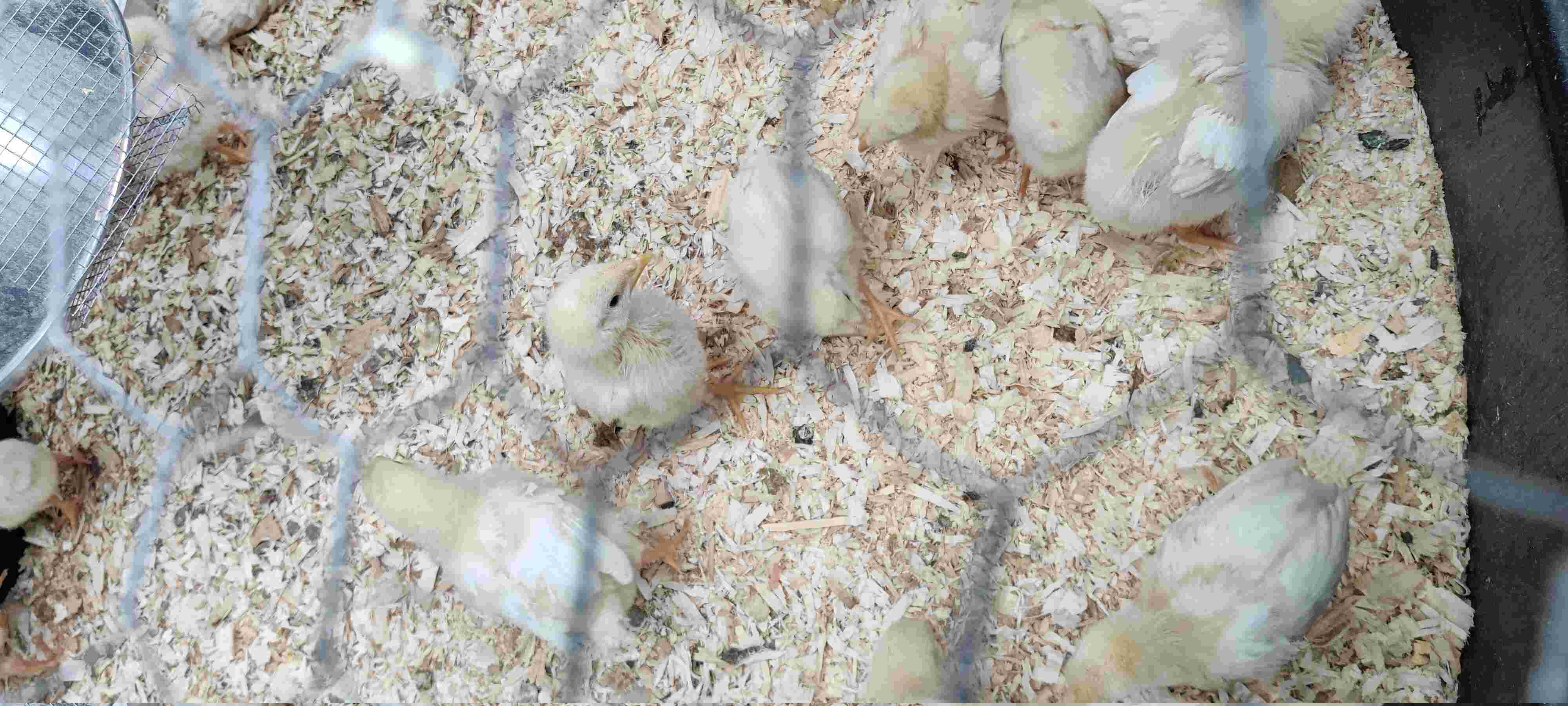 COMMENTS: CHICKS ARE SHOWING WHITE FEATHERS ON THEIR WING TIPS. I PUT 1 CHICK IN ISOLATION THAT STRUGGLED TO WALK, IT RECOVERED AFTER I GAVE IT SOME WATER, AND PLACED IT BACK IN THE BROODER.